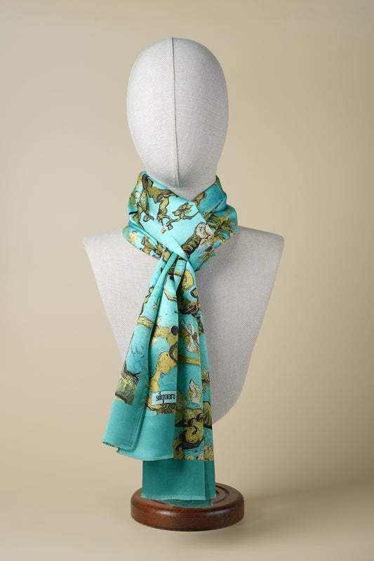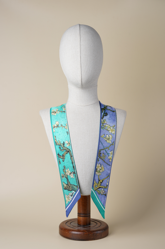 İpek Şal Fular Art Collection-Vincent Van Gogh (Badem Ağacı Turkuaz)
