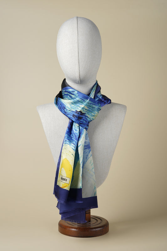 İpek Şal Fular Art Collection-Vincent Van Gogh (Yıldızlı Gece Saks Mavi)