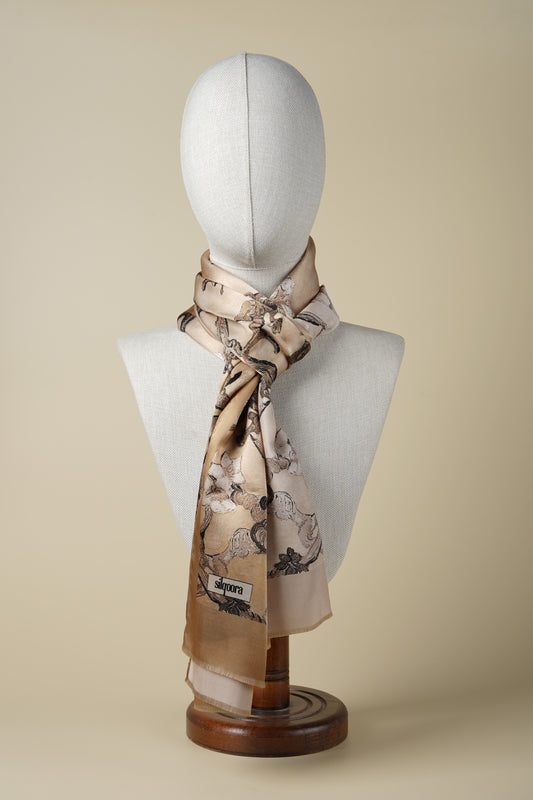 İpek Şal Fular Art Collection-Vincent Van Gogh (Badem Ağacı Beige)