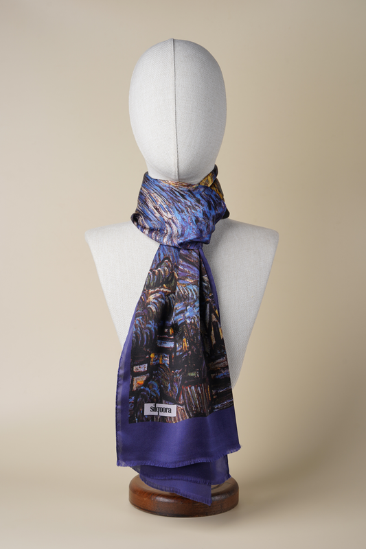 İpek Şal Fular Art Collection- Vincent Van Gogh (Yıldızlı Gece Mor)