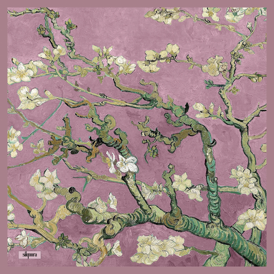 İpek Bandana Fular Art Collection-Vincent Van Gogh (Badem Ağacı Pudra)