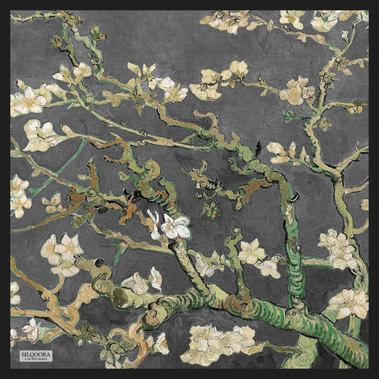 İpek Bandana Fular Art Collection-Vincent Van Gogh (Badem Ağacı Siyah)