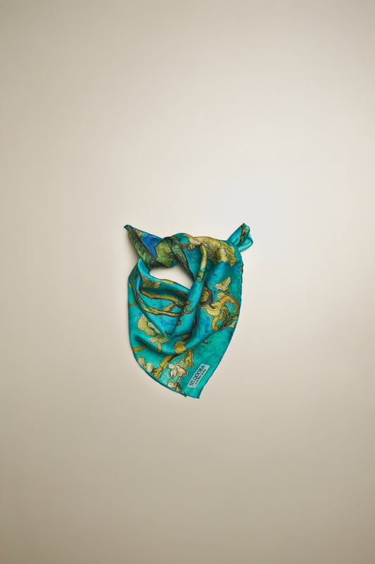 İpek Bandana Fular Art Collection-Vincent Van Gogh (Badem Ağacı Su Yeşil)